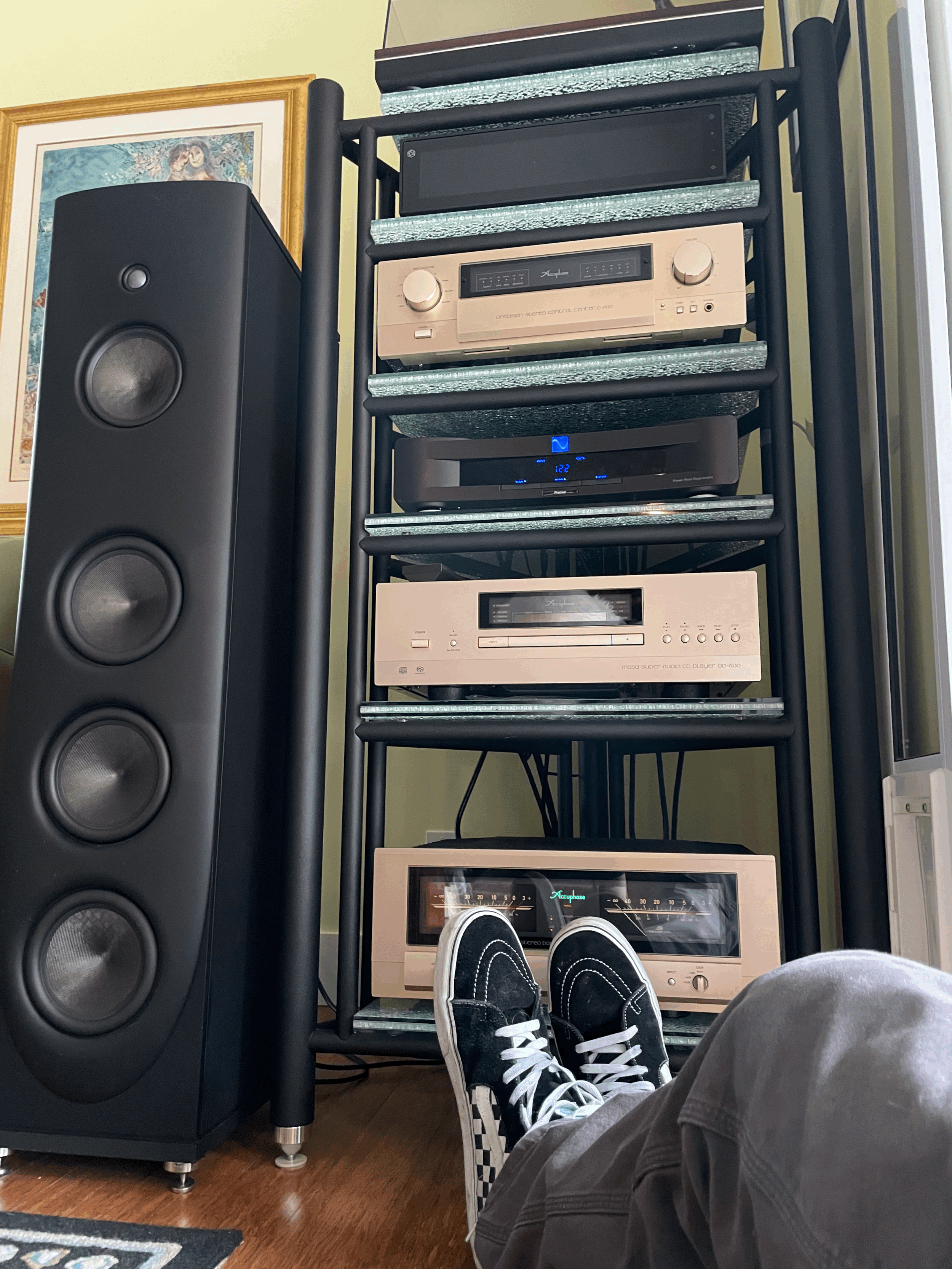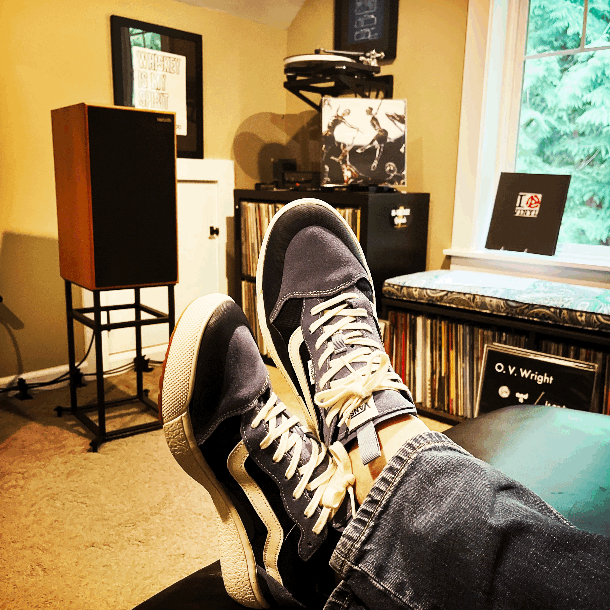 Vans Green/Blue - Line Magnetic LM805, Music Hall Classic turntable, Chord Electronics MScaler/HugoTT2, Spendor A7s.