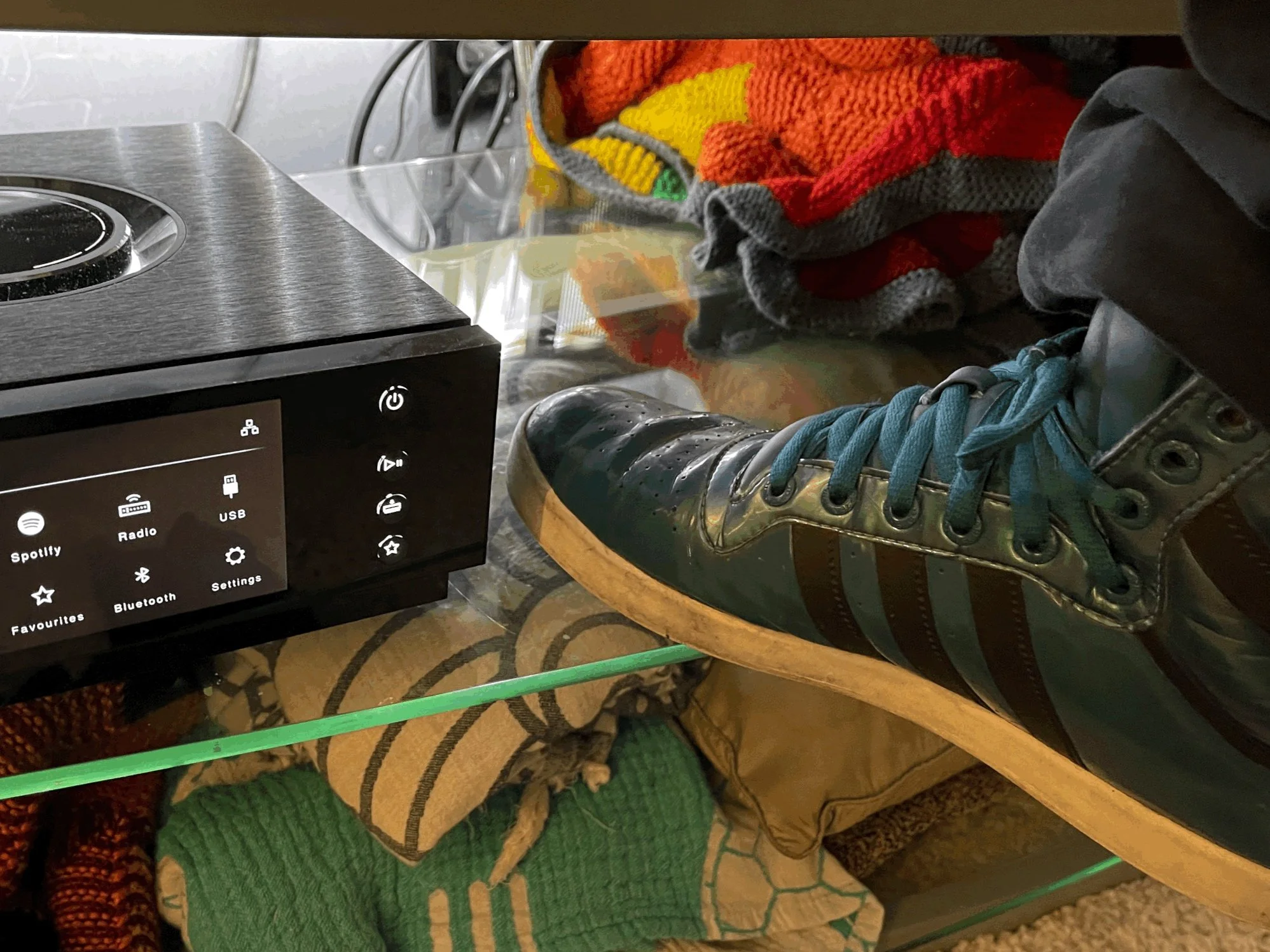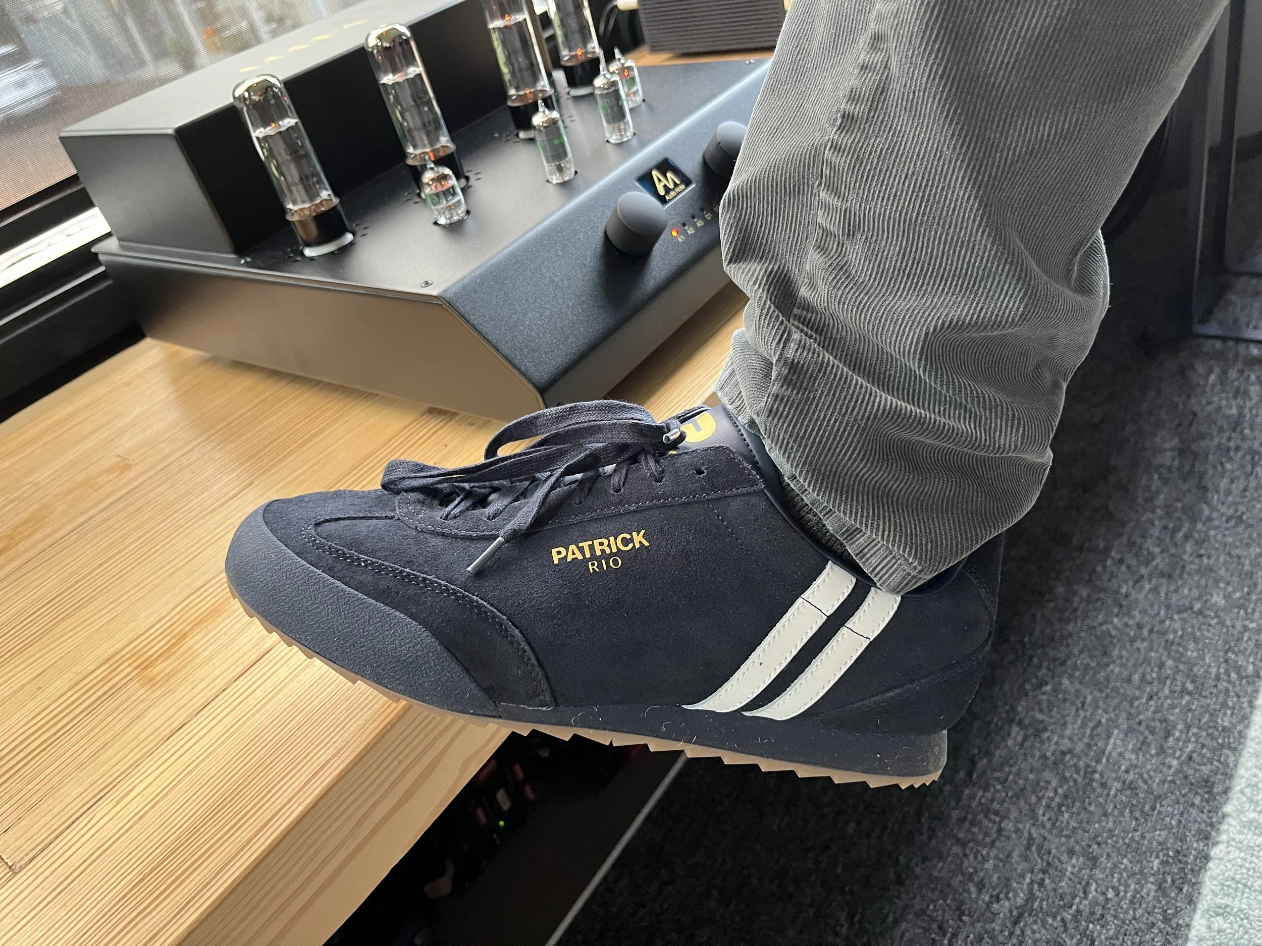 Patrick Rio indoor soccer shoes (UK) - AudioNoteUK Cobra integrated amplifier.