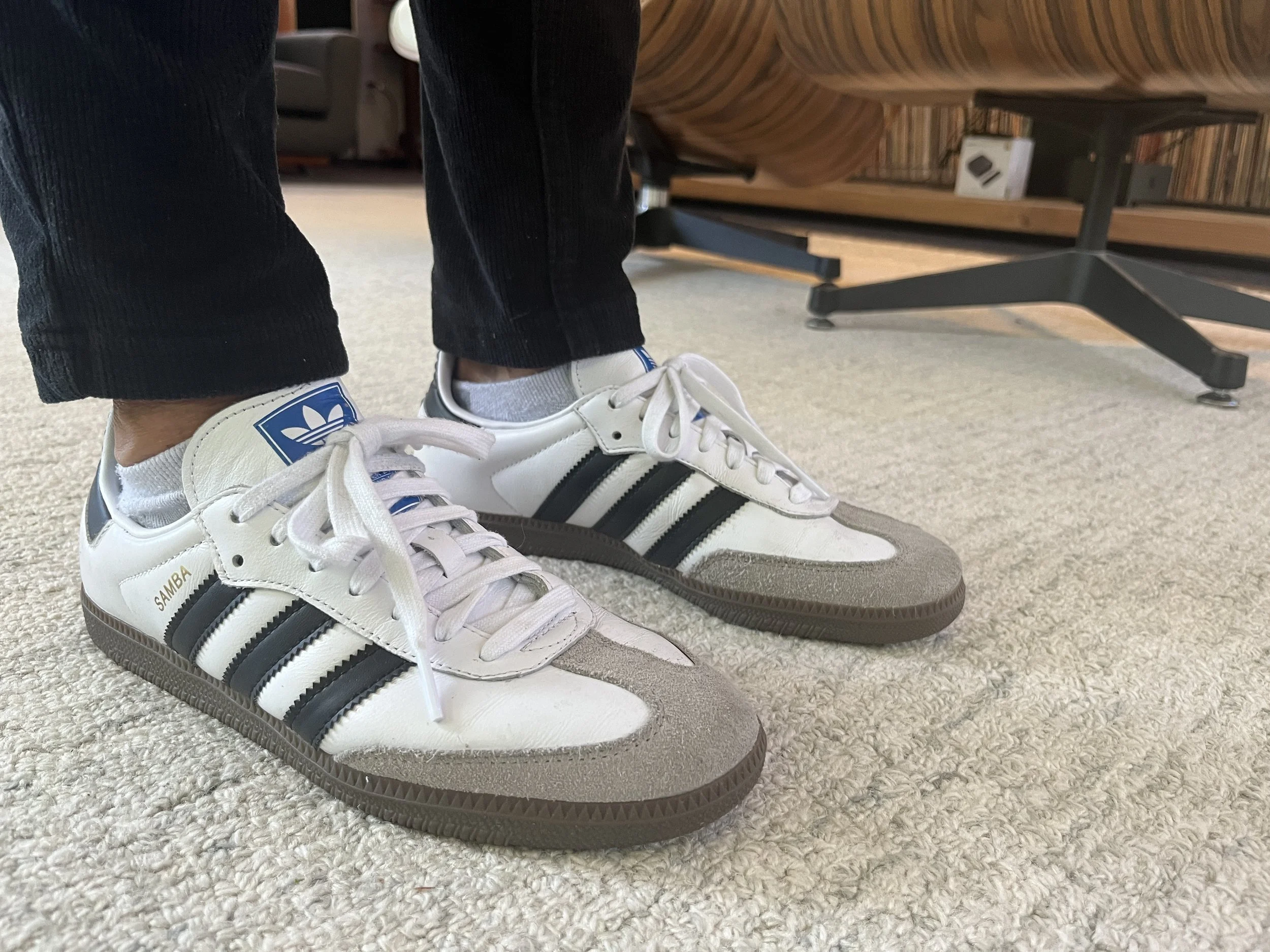 Adidas Samba white on white. One of the coolest ladies around… Join the Cult.