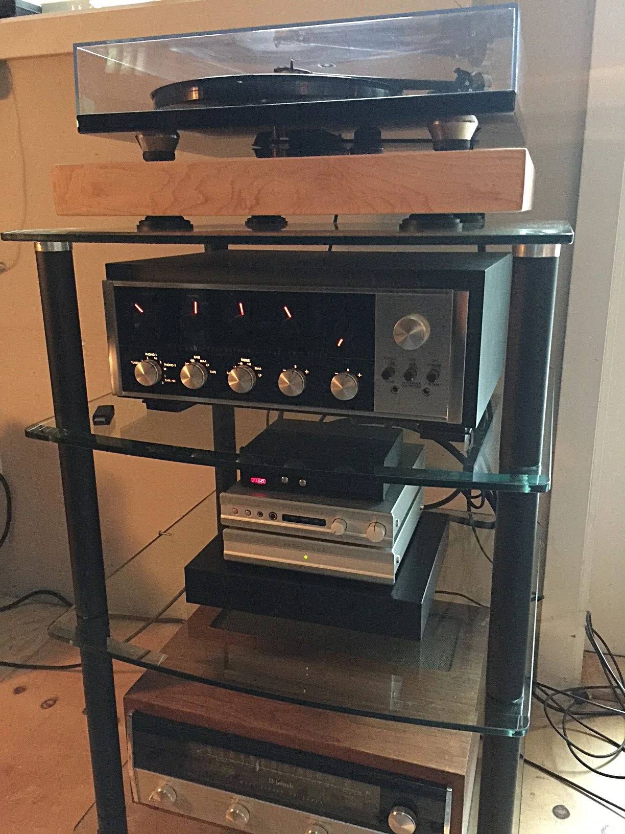 Miles C System: McIntosh MC75 mono blocks (sequential Serial #'s) McIntosh C22 pre amp McIntosh MVP 852 (using as CD player) McIntosh MR85 tuner Rega RP8 with Denon DL-110 Klipsch RP7 II speakers