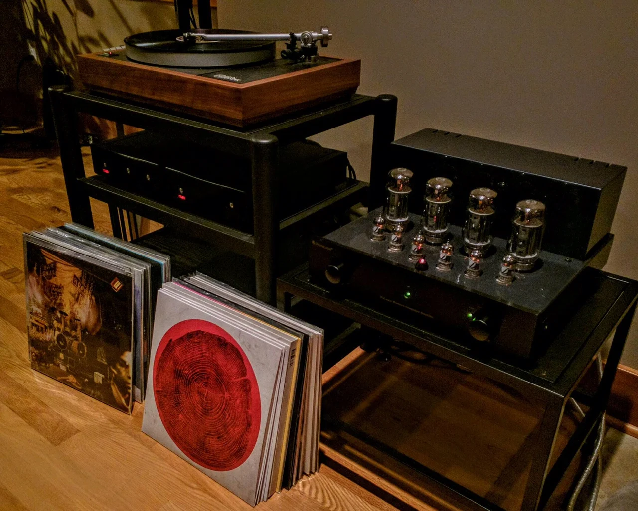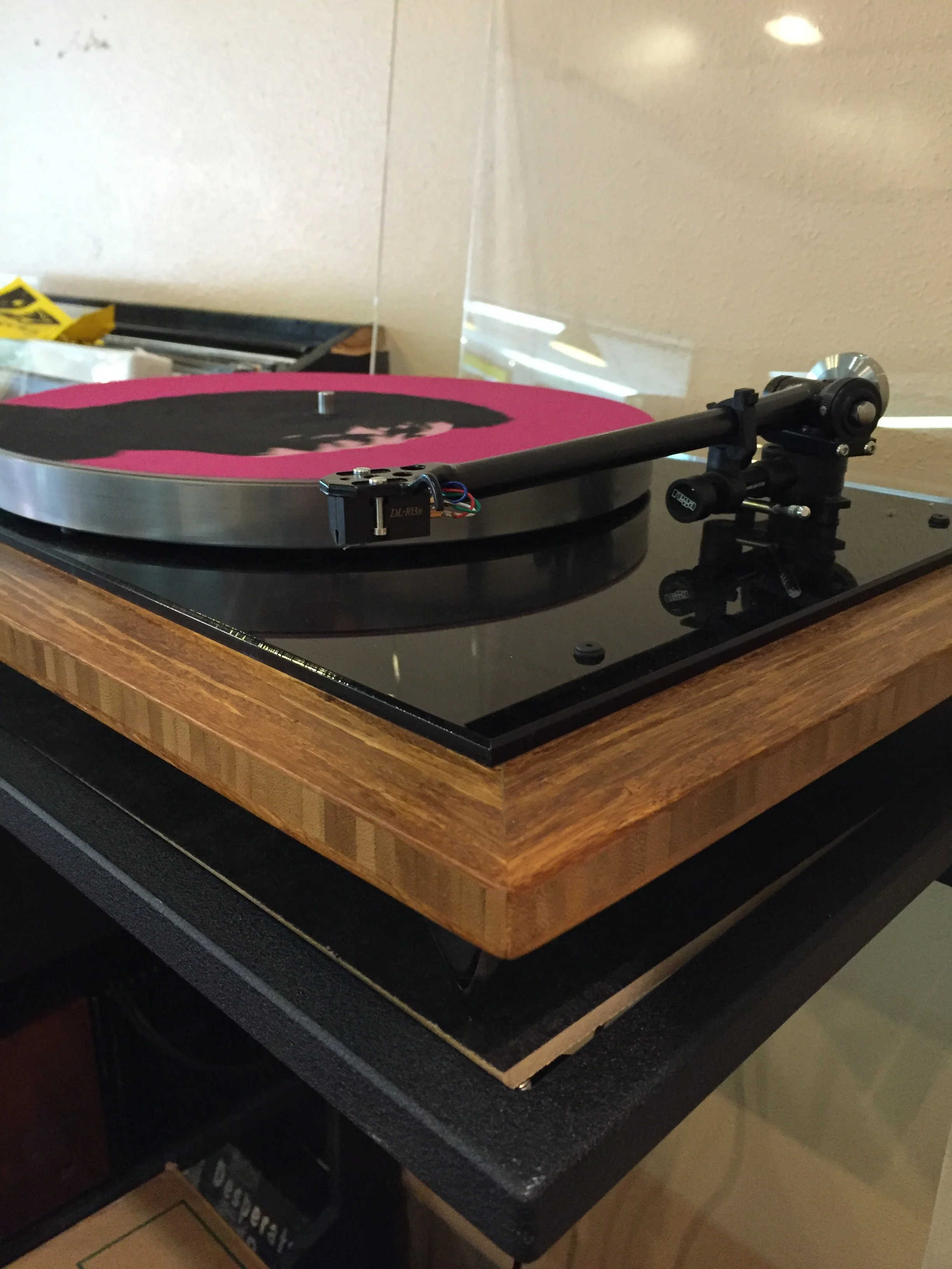 Hi Voltage Records System: Custom GHA bamboo AR-XA/Rega 303/Denon DL103R, Pioneer 1250 receiver, Project Tube phono stage, JBL speakers.
