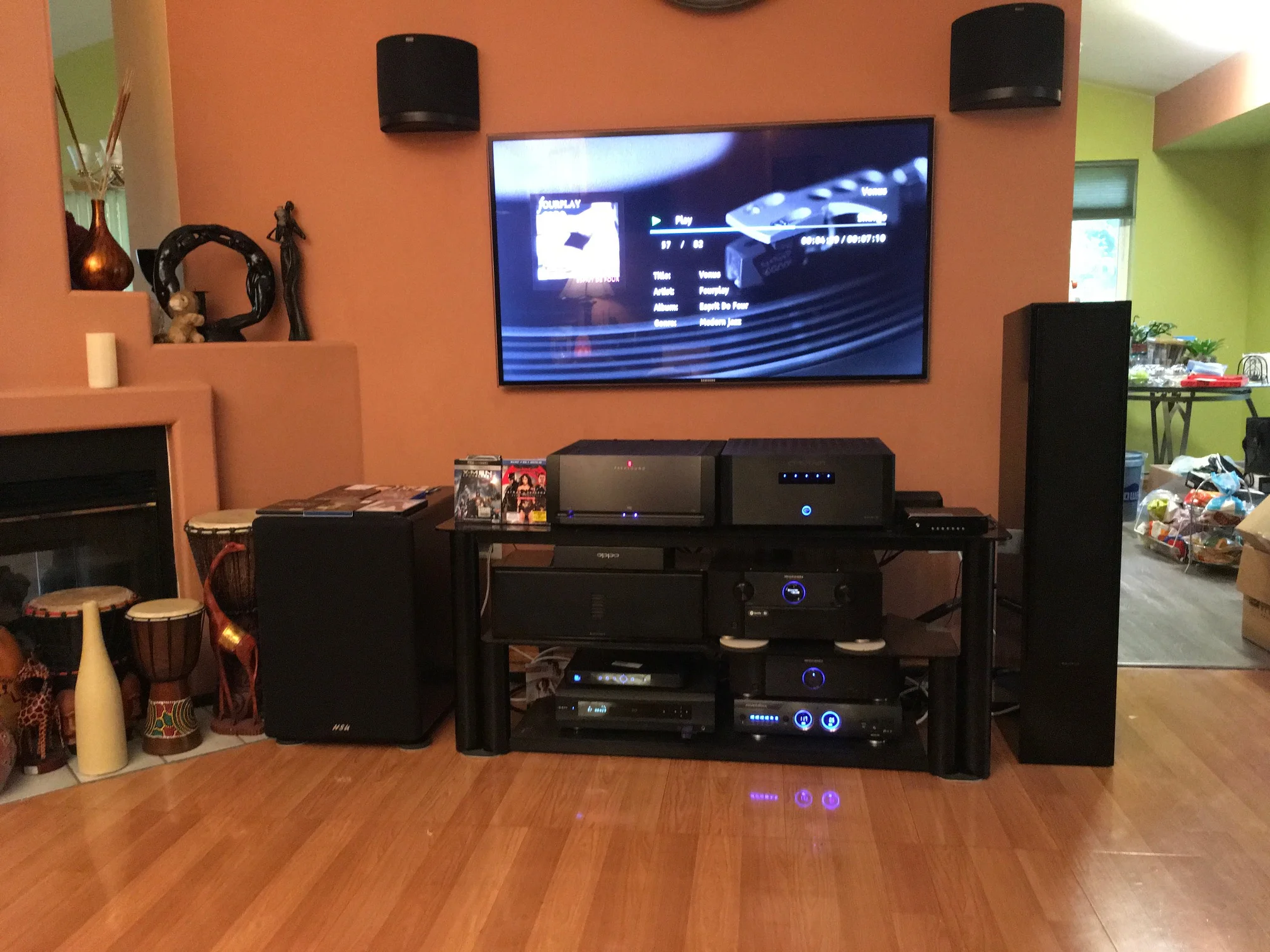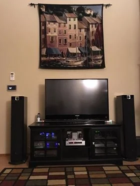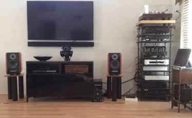 Todd C System: Yamaha CA-5100, 3 x B&K ST-1400 amplifiers, Monster AVS-2000 voltage stabilizer, Marantz DV-6600, Nakamichi DR-3, SOTA Star Sapphire Series 5 turntable, REGA RB-303 tonearm, Sumiko Virtuoso Boron MCC, Budgie tube phono preamp, X-Box One S, Nvidia Shield, JM Lab (Focal) Mini Utopia’s (front), M&K S-85’s (center), KEF Q70’s (rear), Focal Cub (sub), Samsung 65” 4k. DANG!