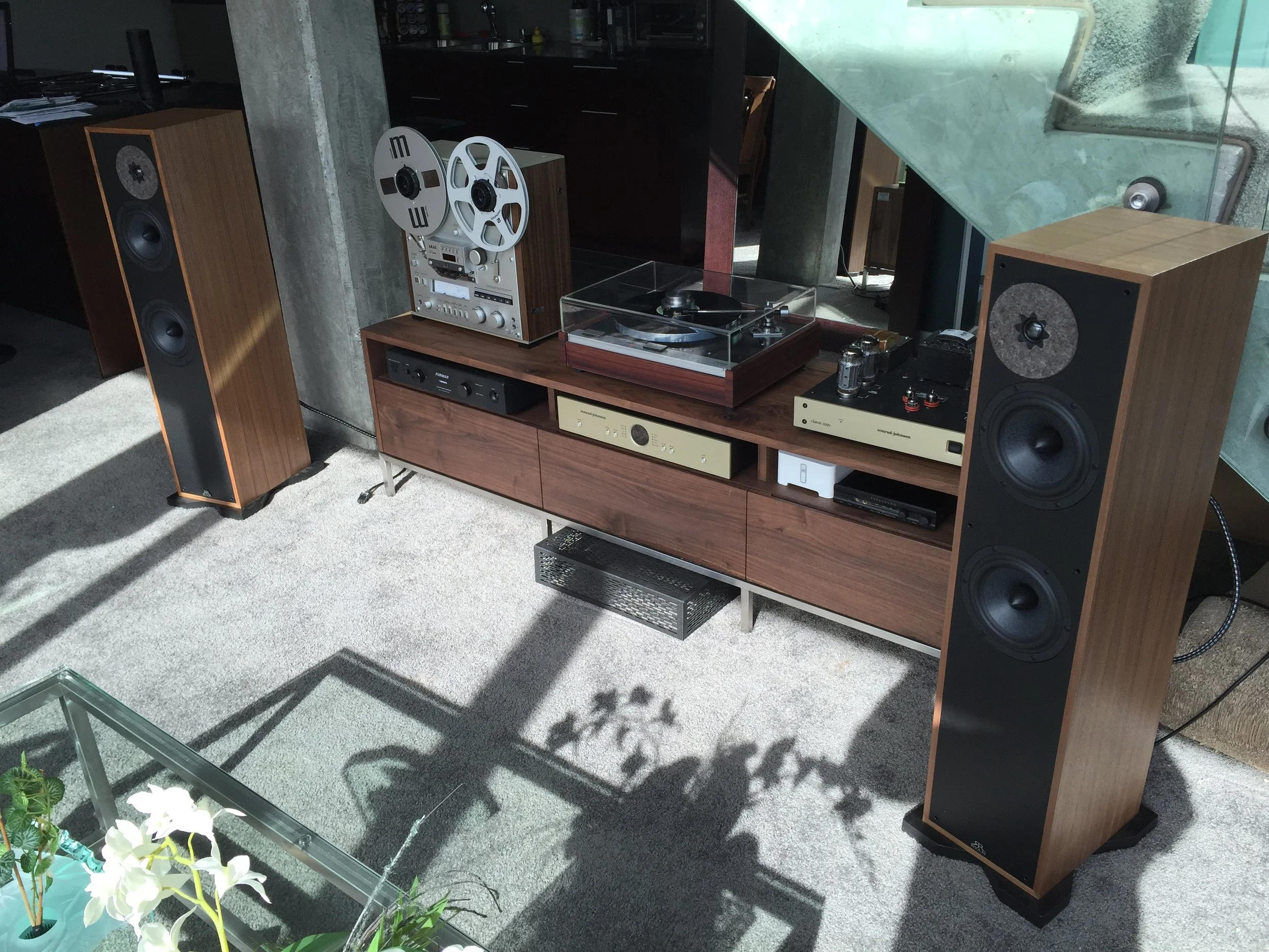 Robert System: Ryan 620 floor standers, Thorens TT, CJ power amps, Akai GX 625 R2R.