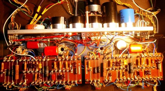 We work on 2 channel solid state and tube amplifiers, CD players, turntables, and tape decks. What is that picture above? That is a Harman Kardon Citation II tube power amplifier that Gig Harbor Audio completely restored. Every single cap, resistor, chord, socket, etc. was replaced. It sounds good. We work on Audio Note UK, McIntosh (older ones), Marantz, Sansui, HK, Acoustic Research, Pioneer, Dynaco, Naim, Rega, and many more. We do not work on: Krell, B&K, Audio Research, Phase Linear, Carver, any A/V receiver, and some other brands.