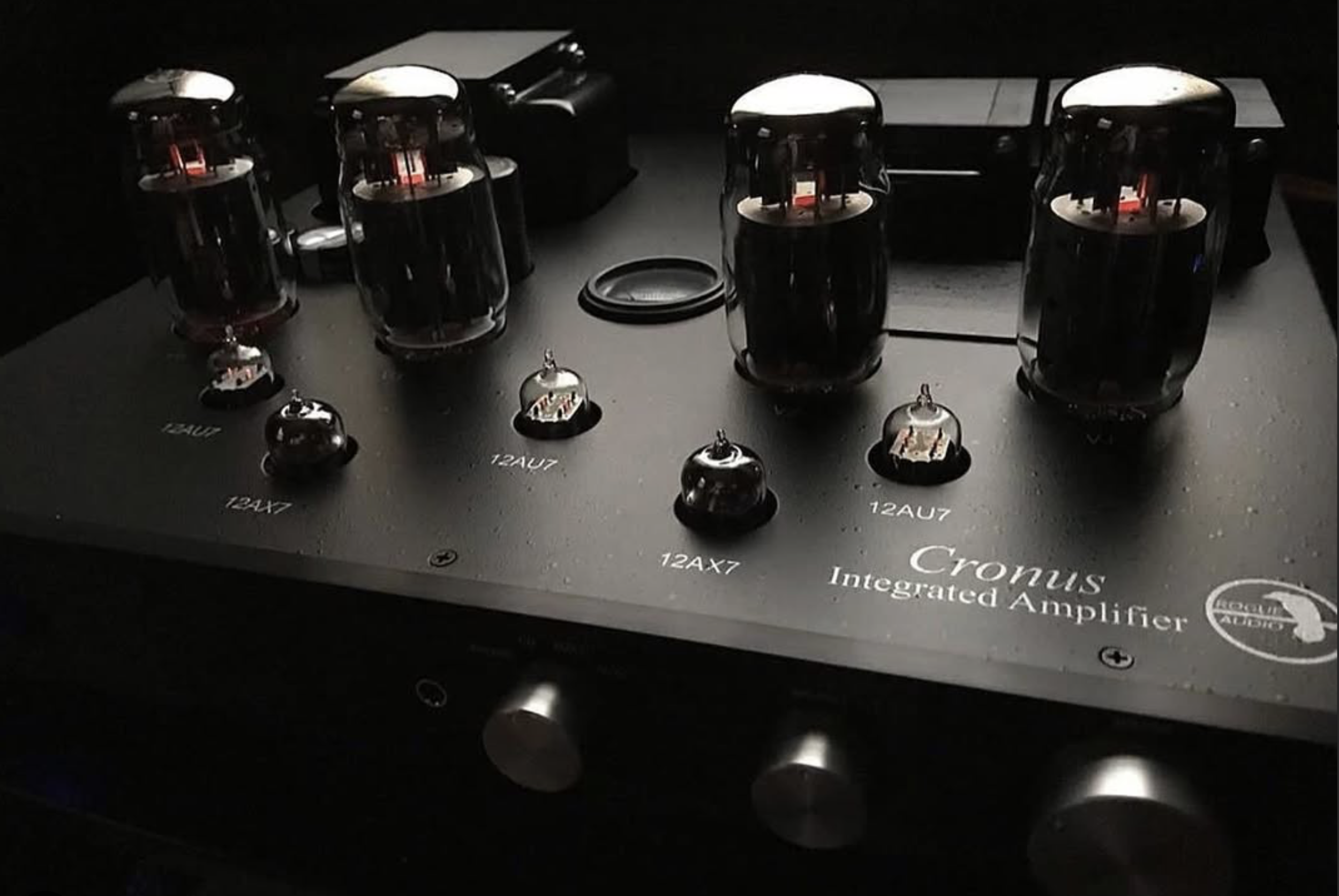 Above is the new Rogue Cronus DARK. Built in the USA. MM/MC phono stage, 100 WPC, great headphone amp, remote control, $4499 each. This is an awesome amplifier. They currently ship with KT-88 power tubes.